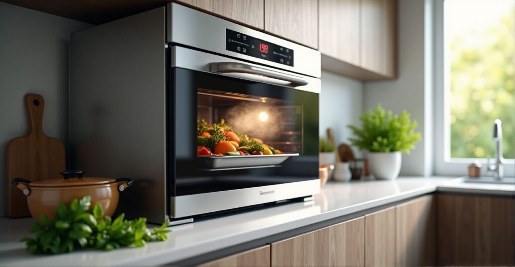 Deze oven heeft 25 automatische kookprogramma's die precies de juiste instellingen kiezen als je het type gerecht en gewicht invoert. Je kunt de oven ook nauwkeurig bedienen via het touchscreen voor de perfecte temperatuur. De grillfunctie zorgt voor een krokante korst op lasagne of ovenschotels met kaas.
